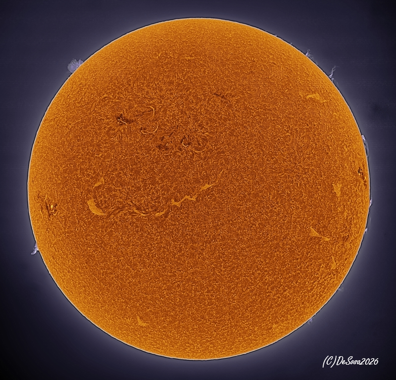 Es posible tomar fotografías de la cromosfera utilizando telescopios especiales capaces de filtrar estrechamente la línea espectral Ha, como en esta imagen.