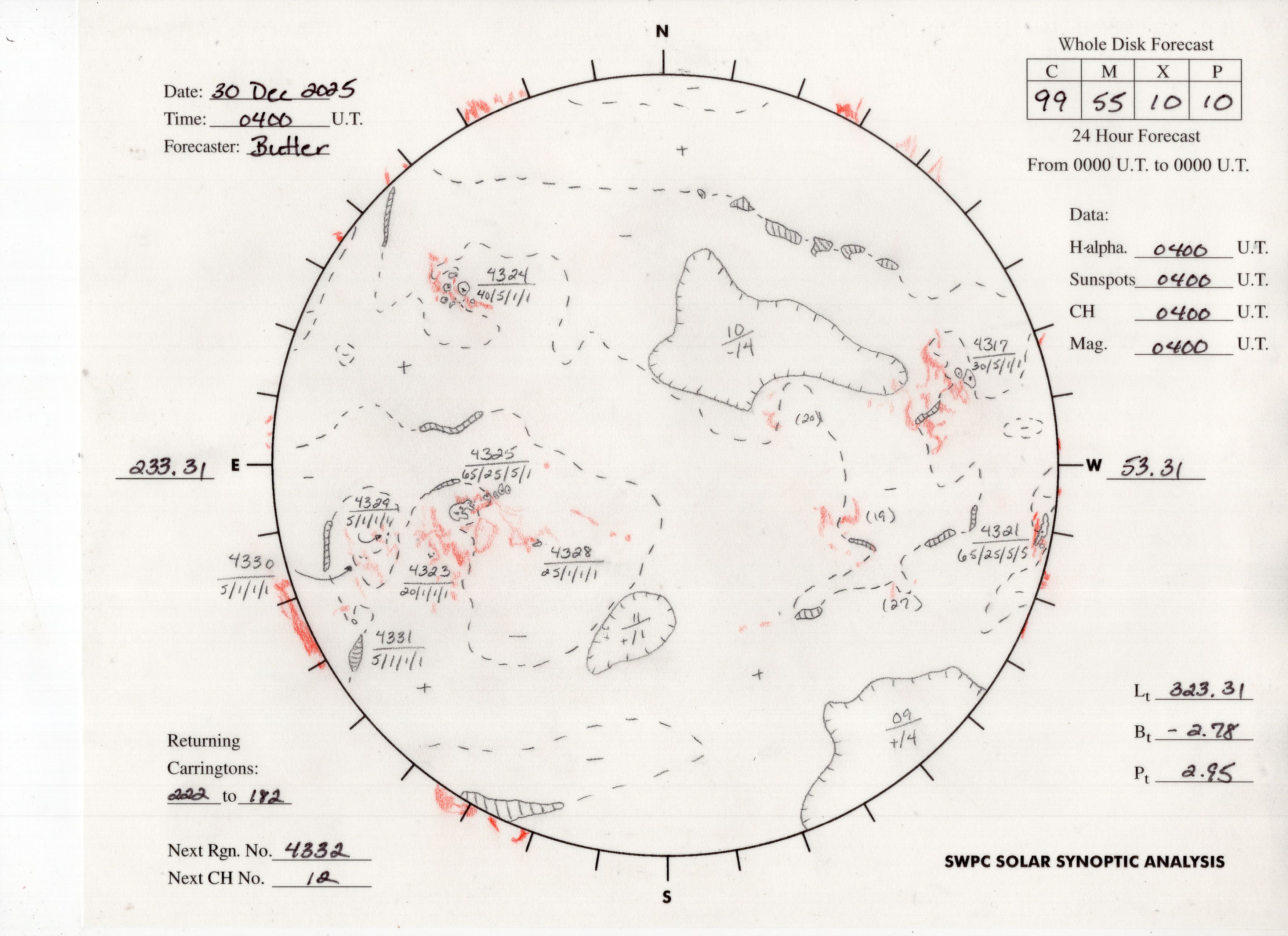 The forecaster drawn synopic maps provide details of solar features: