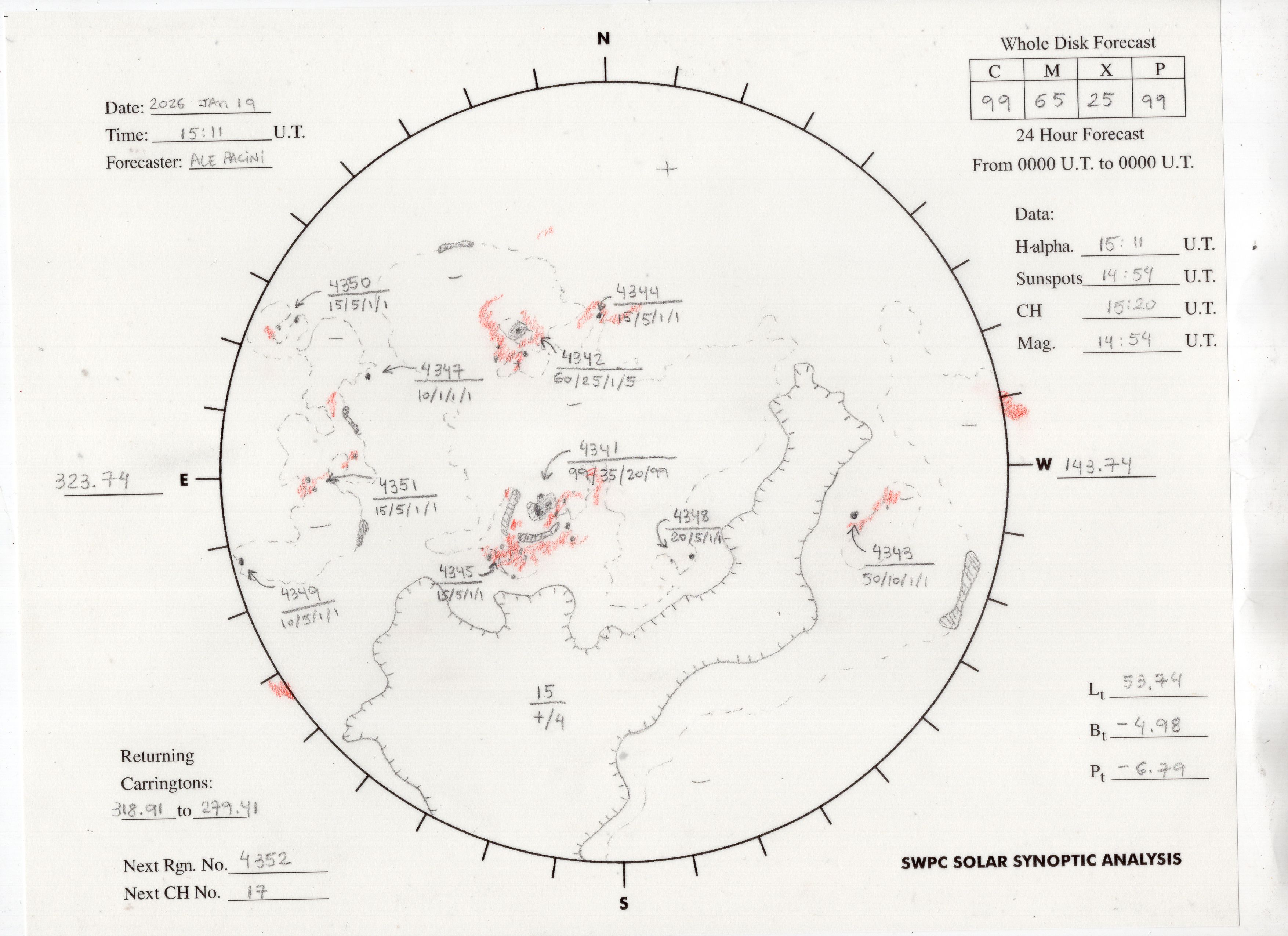 The forecaster drawn synopic maps provide details of solar features: